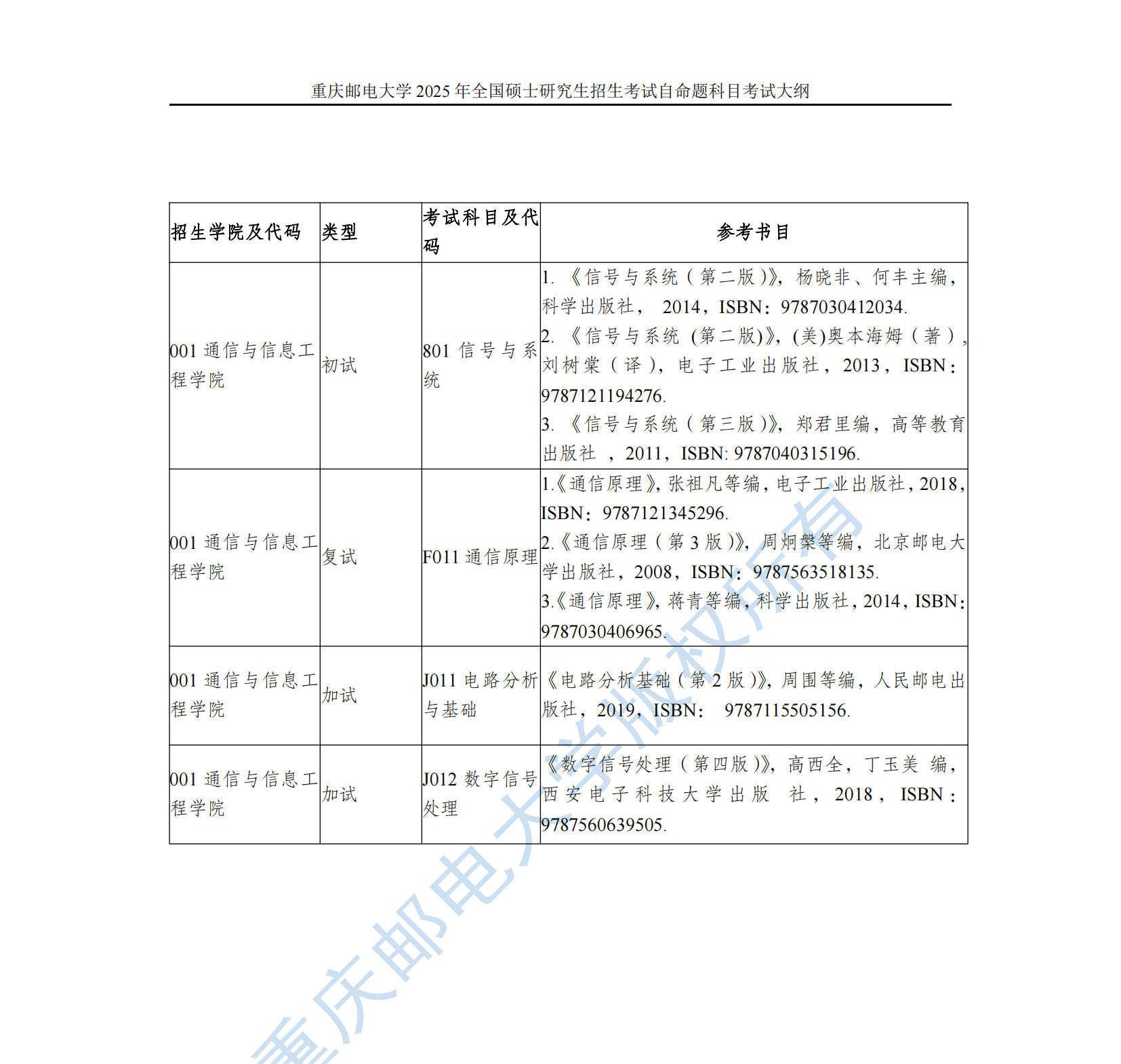 重庆邮电大学 2025 通信与信息工程学院 硕士研究生考试